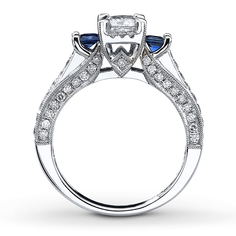 Blue Sapphire, Garnet and Diamond Tiara Ring in Sterling Silver and 10K Gold